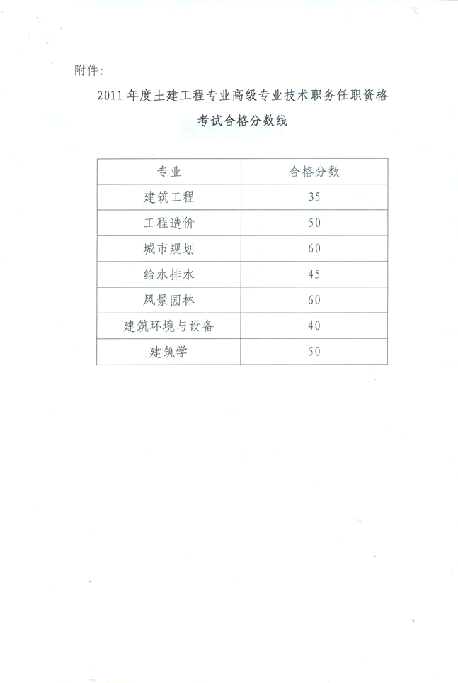 關于公布2011年度土建工程專業(yè)高級專業(yè)技術職務任職資格考試合格分數(shù)線的通知