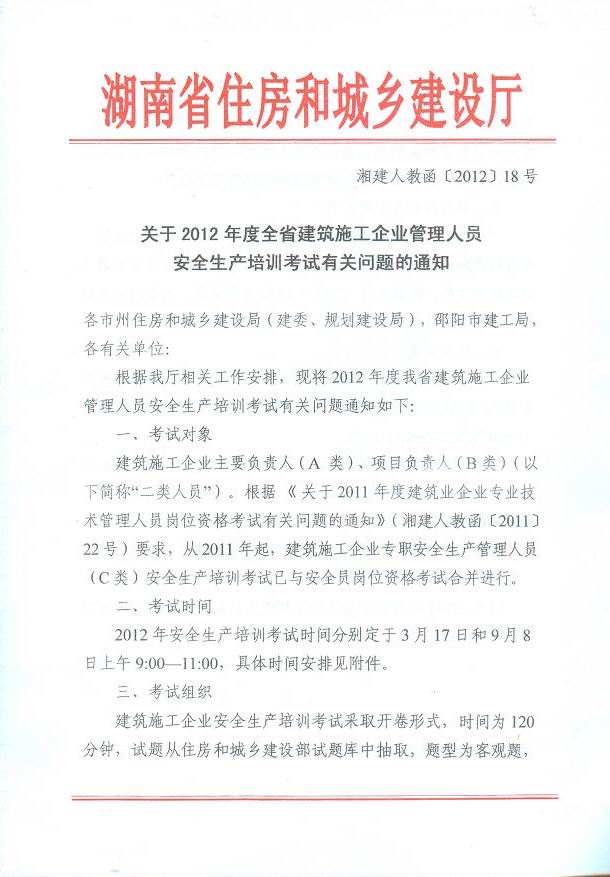 關(guān)于2012年度全省建筑施工企業(yè)管理人員