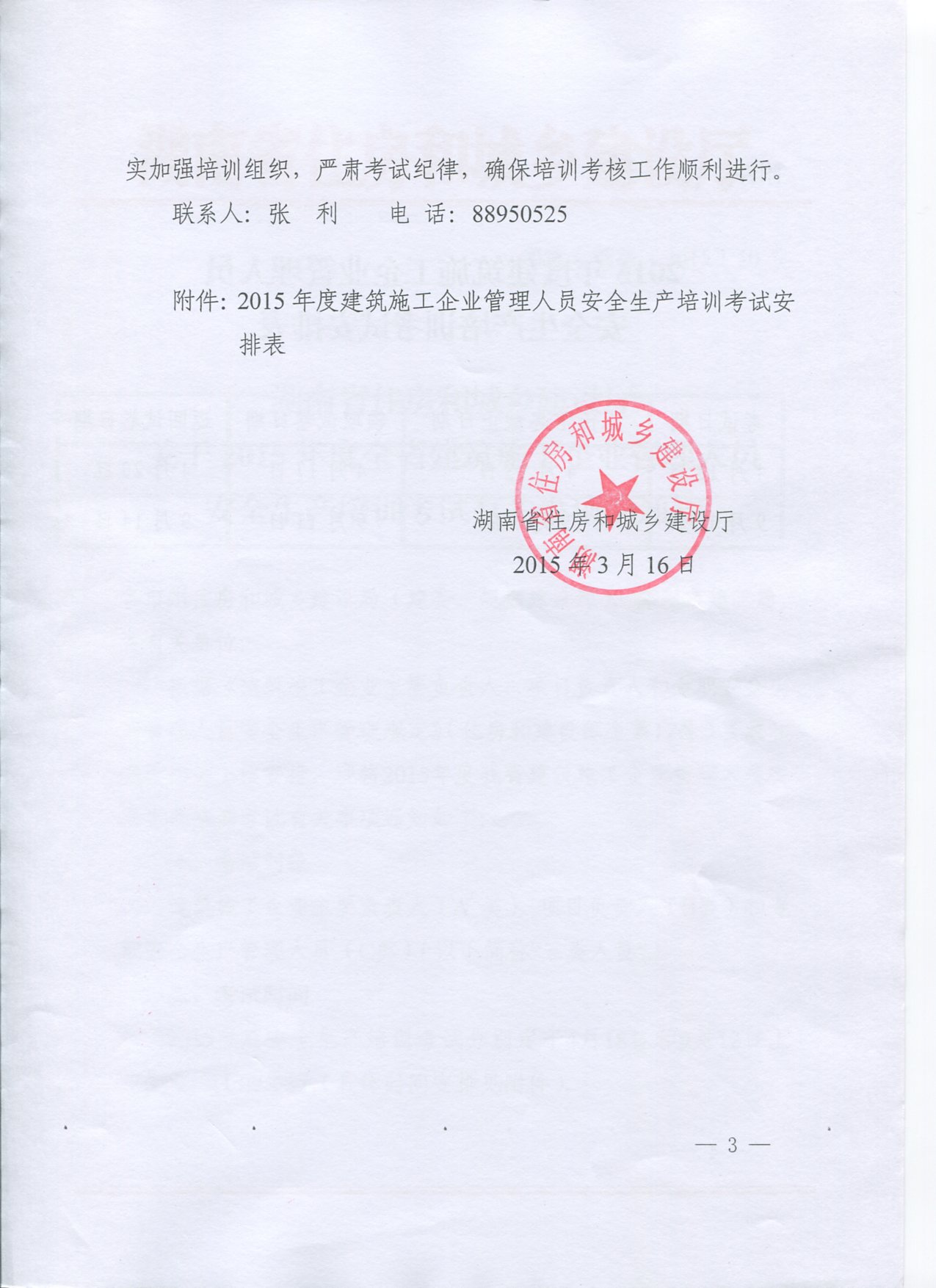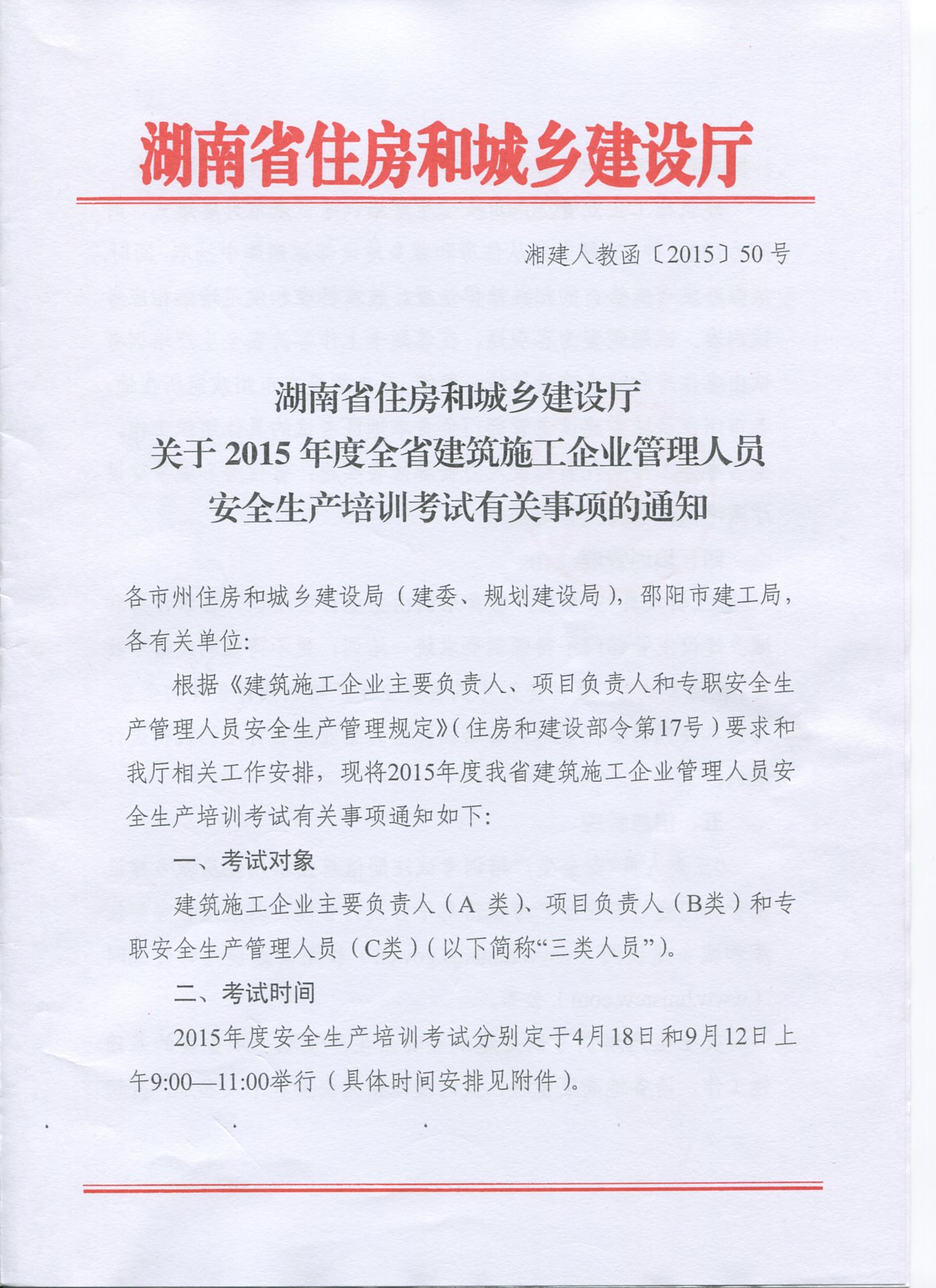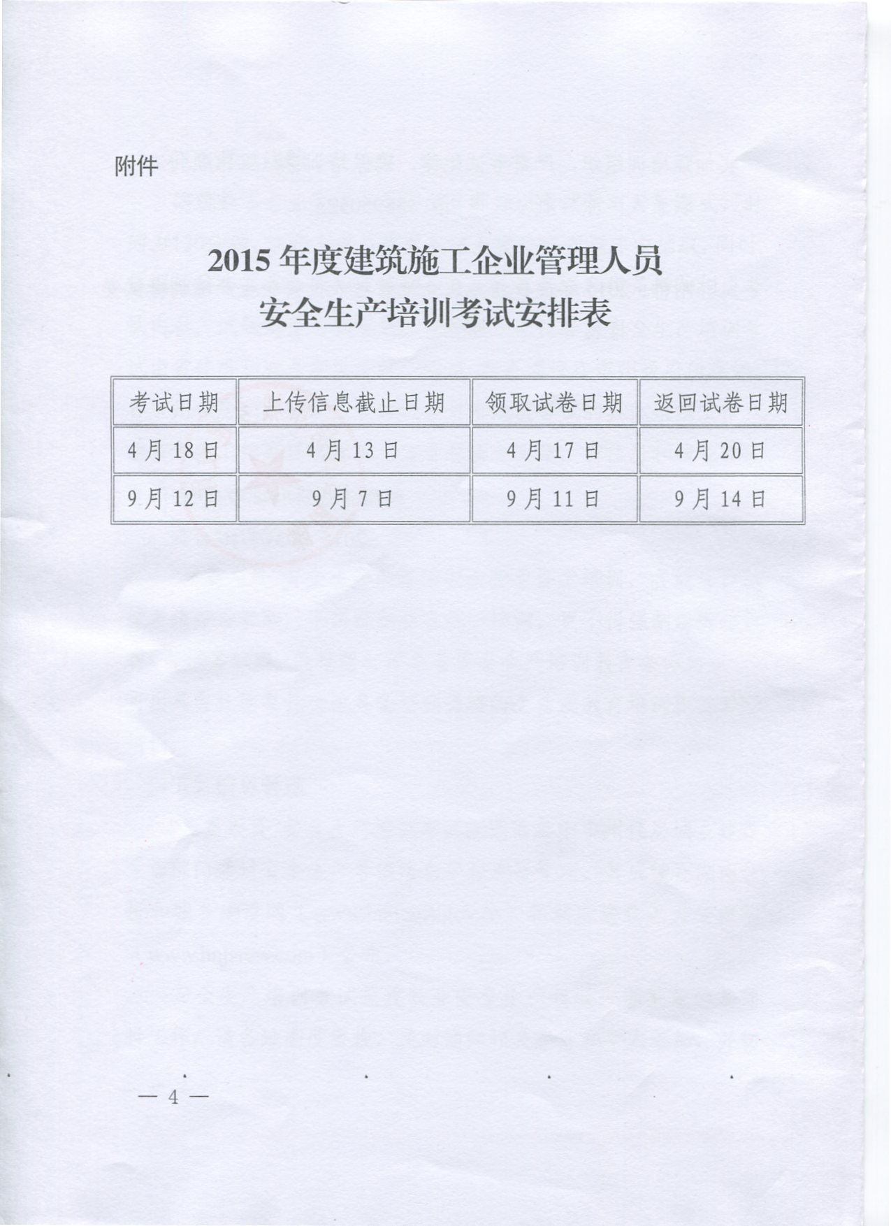 2015年度全省建筑施工企業(yè)管理人員安全生產(chǎn)培訓考核內容的說明