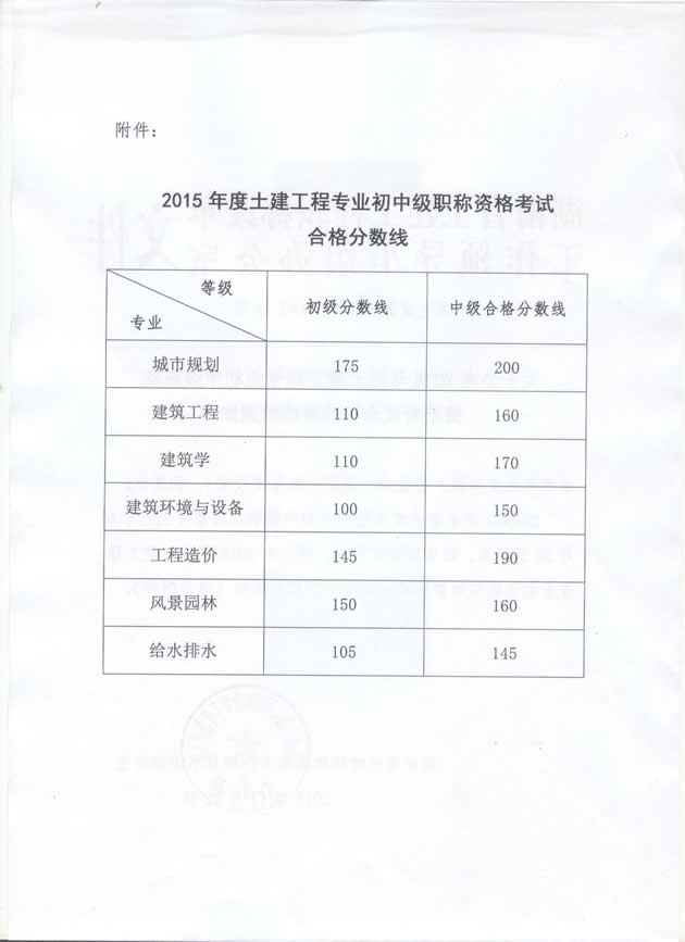 關(guān)于公布2015年土建工程專業(yè)初中級職稱