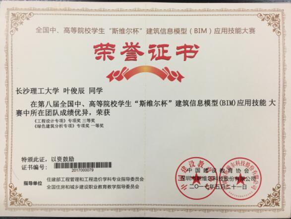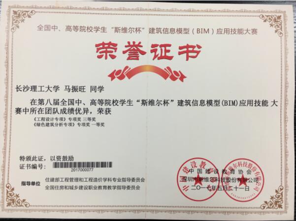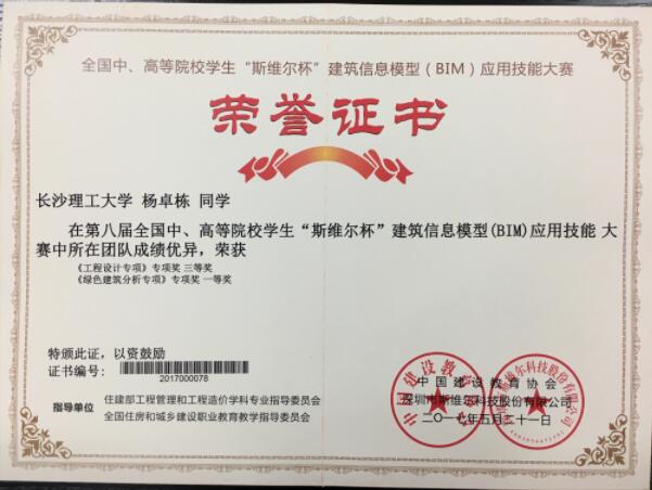 5月20日-21日,由中國建設(shè)教育協(xié)會主辦,住建部工程管理和工程造價學(xué)科專業(yè)指導(dǎo)委員會、全國住房和城鄉(xiāng)建設(shè)職業(yè)教育教學(xué)指導(dǎo)委員會指導(dǎo)協(xié)辦的第八屆全國中、高等院校學(xué)生“斯維爾杯”建筑信息模型(BIM)應(yīng)用技能大賽在杭州和長春兩個賽區(qū)聯(lián)網(wǎng)同步舉行,長沙理工大學(xué)由付果、李傳習(xí)、胡敏、何競昌等老師指導(dǎo)的學(xué)生馬振旺、葉俊辰、黃杰、范海山和楊卓棟組成的“長理施工隊”,經(jīng)過激烈角逐,最終斬獲綠色建筑分析一等獎、工程設(shè)計三等獎。