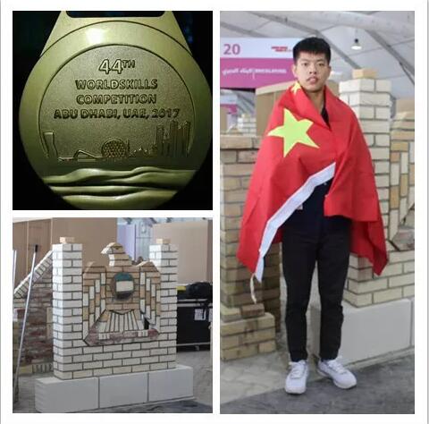 2017年10月19日,第44屆世界技能大賽在阿聯(lián)酋阿布扎比落下帷幕,世屆技能大賽砌筑項目集訓基地(長沙建筑工程學校)培訓選手梁智濱以69.89分的好成績奪得砌筑項目第一名,為祖國捧回世界技能大賽砌筑項目第一枚金牌。