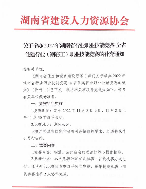 1、湖南省住房和城鄉(xiāng)建設(shè)廳等3部門關(guān)于舉辦2022年湖南省行業(yè)職業(yè)技能競賽·全省住建行業(yè)職業(yè)技能競賽的通知
