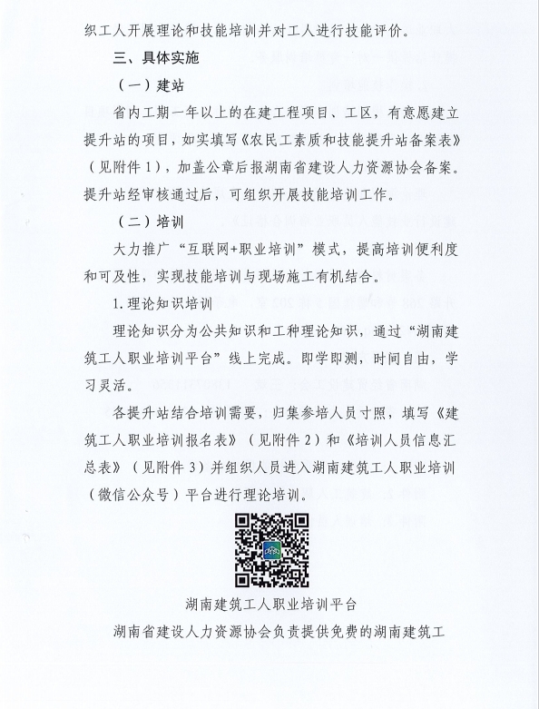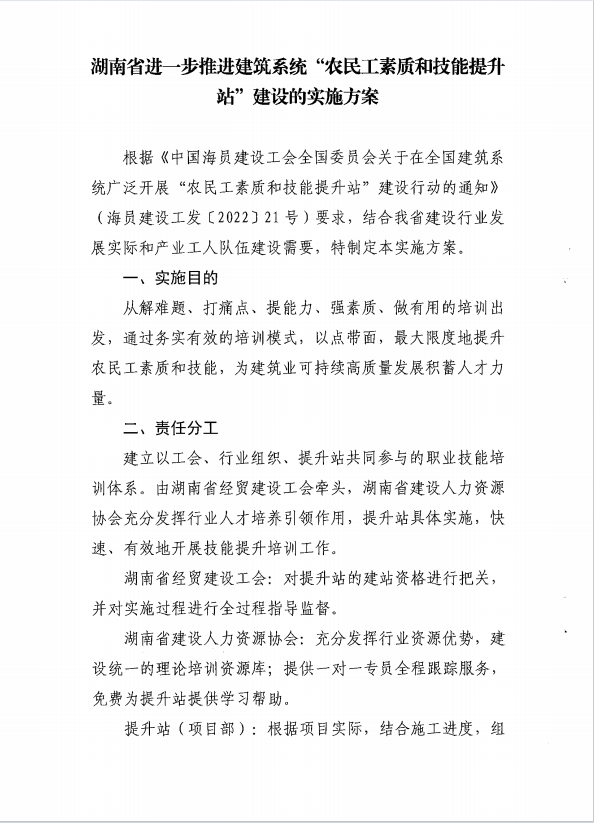 關(guān)于下發(fā)《湖南省進(jìn)一步推進(jìn)建筑系統(tǒng)“農(nóng)民工素質(zhì)和技能提升站”建設(shè)的實(shí)施方案》的通知