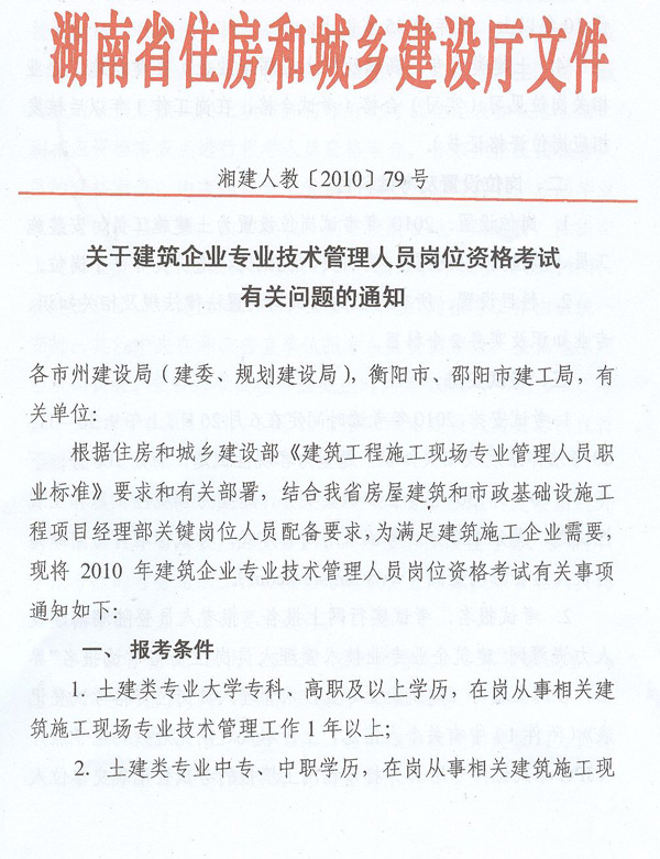 關(guān)于建筑企業(yè)專業(yè)技術(shù)管理人員崗位資格考試有關(guān)問題的通知